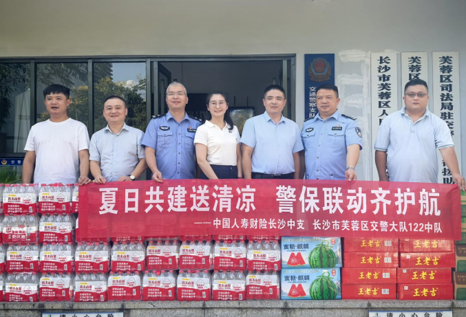炎炎夏日,高温持续,为致敬一线交警的辛勤付出,深化警保协作机制,中国人寿财产保险股份有限公司长沙中心支公司(以下简称“中国人寿财险长沙中支”)8月29日携手长沙市芙蓉区交警大队122中队,共同组织开展“夏日共建送清凉 警保联动齐护航”慰问活动,为坚守岗位的交通民警送去清凉与关怀。