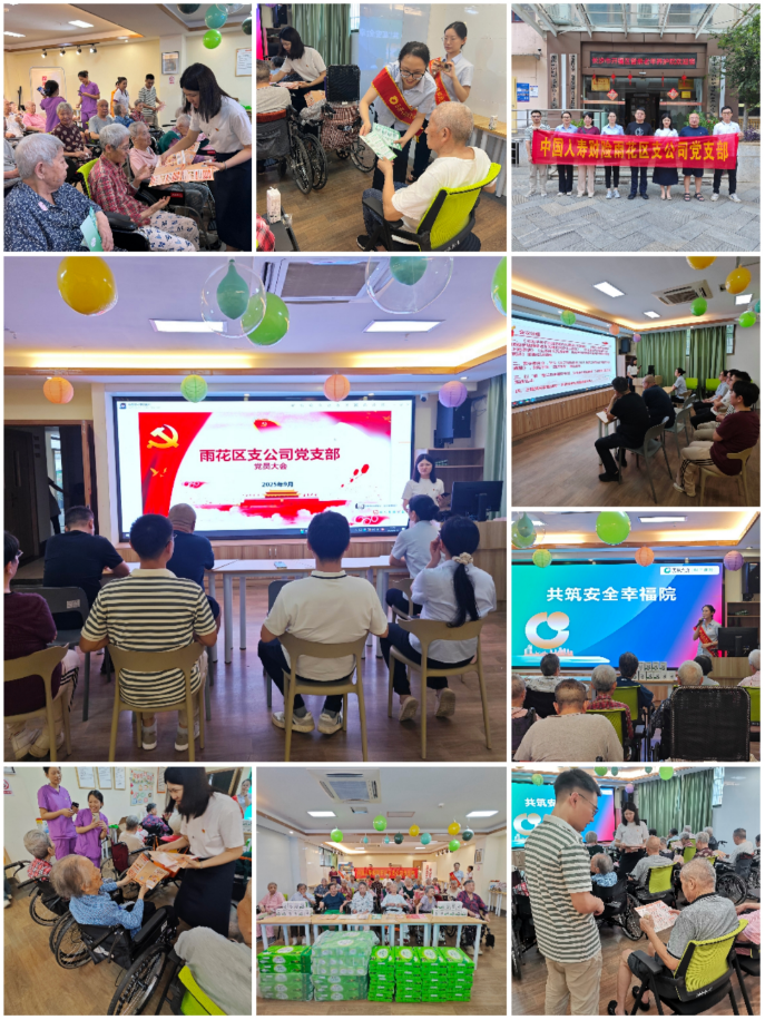 2025年9月17日下午 ,国寿财险长沙中支雨花区支公司党支部联合中支客服部,赴普亲养老东风路院开展主题党日实践活动,为院内老人送去暖心关怀。